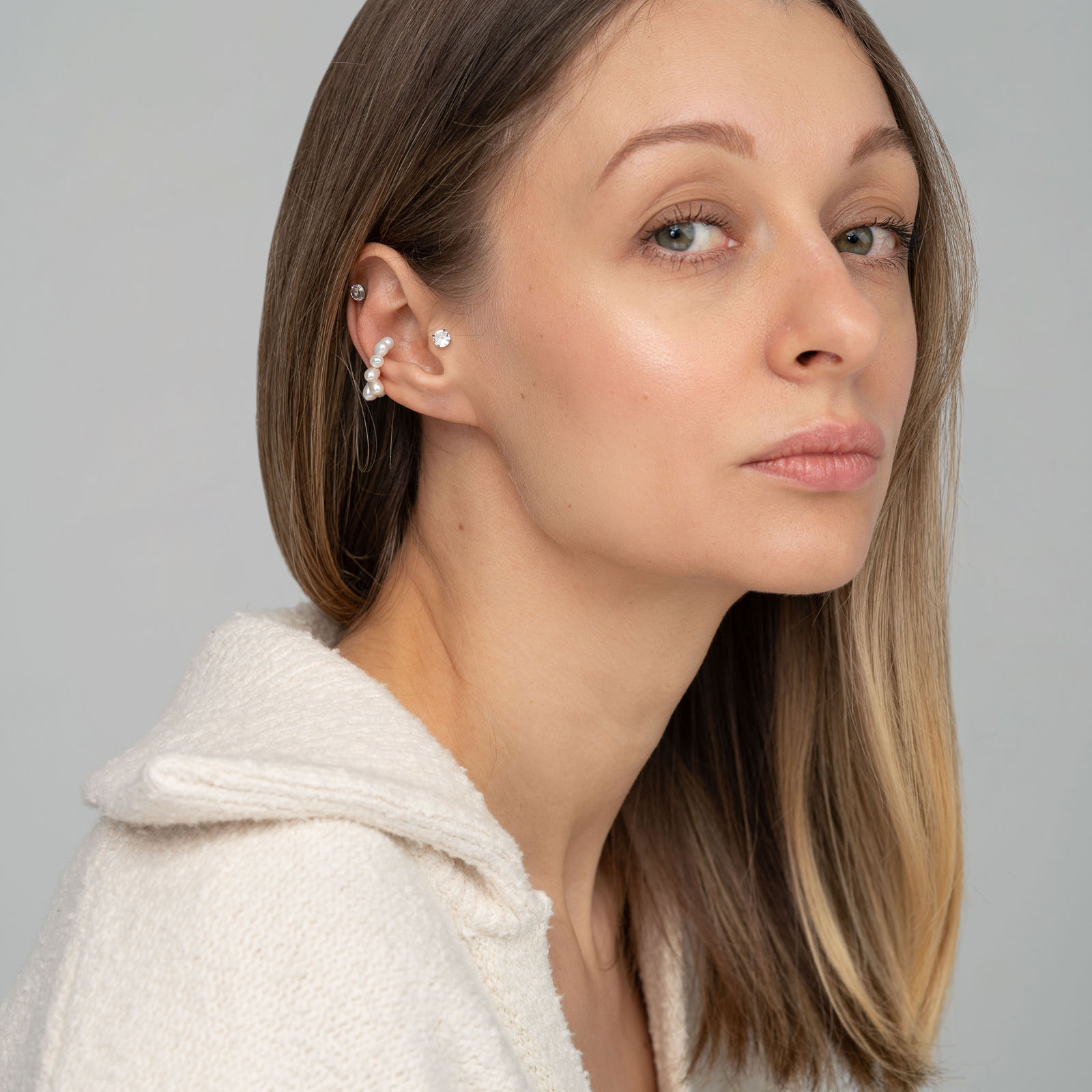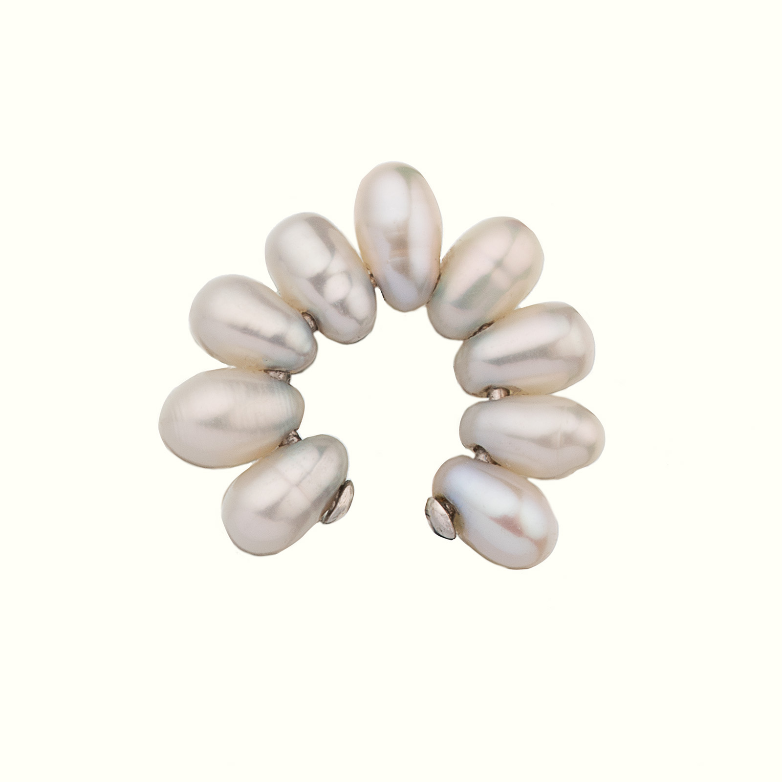 Кафф из продолговатых жемчужин. За счет необычной формы жемчуга, он не статичен и будет выглядеть по-разному в зависимости от поворота камней.