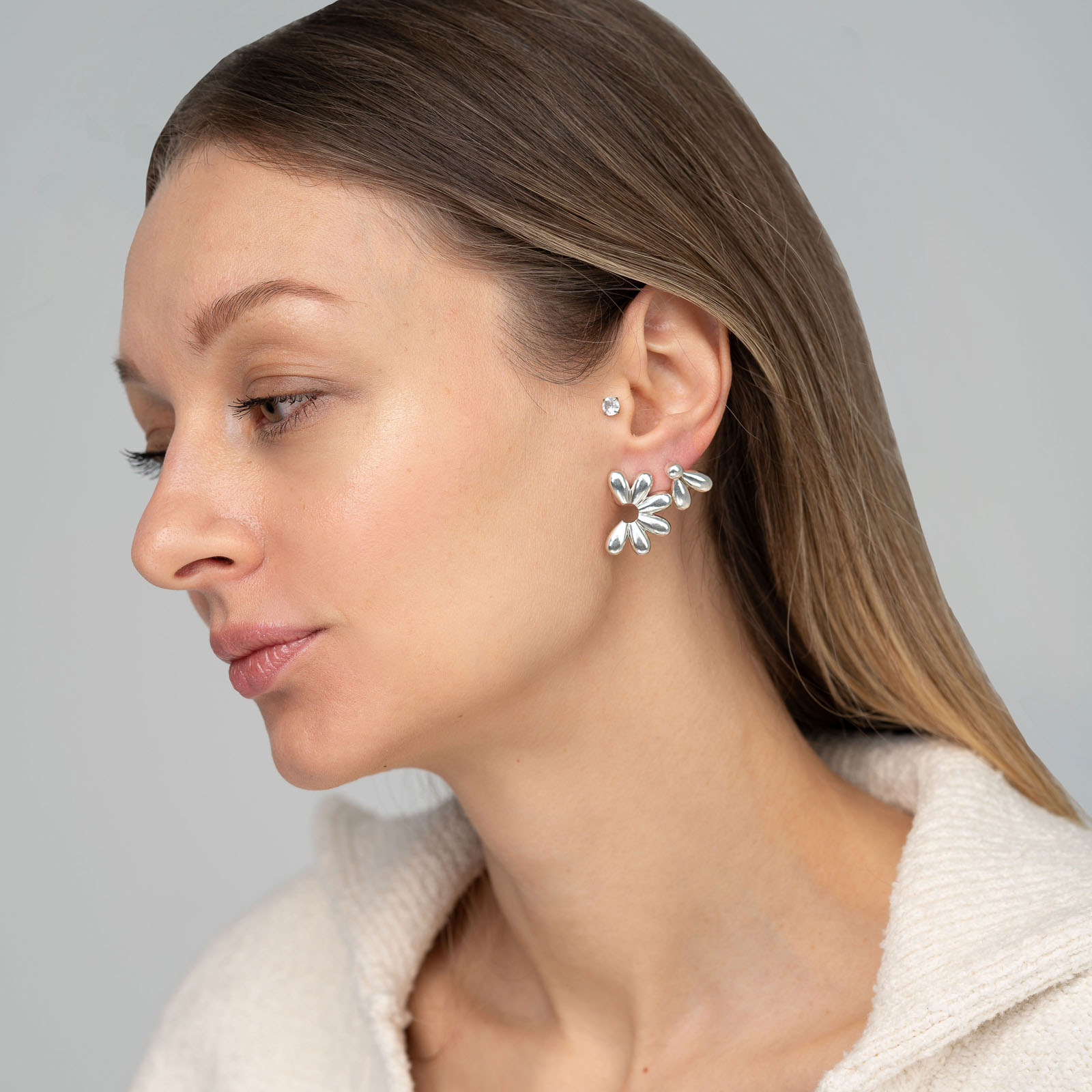Моносерьга двойной лепесток, если хочется дополнить сет из ромашек.