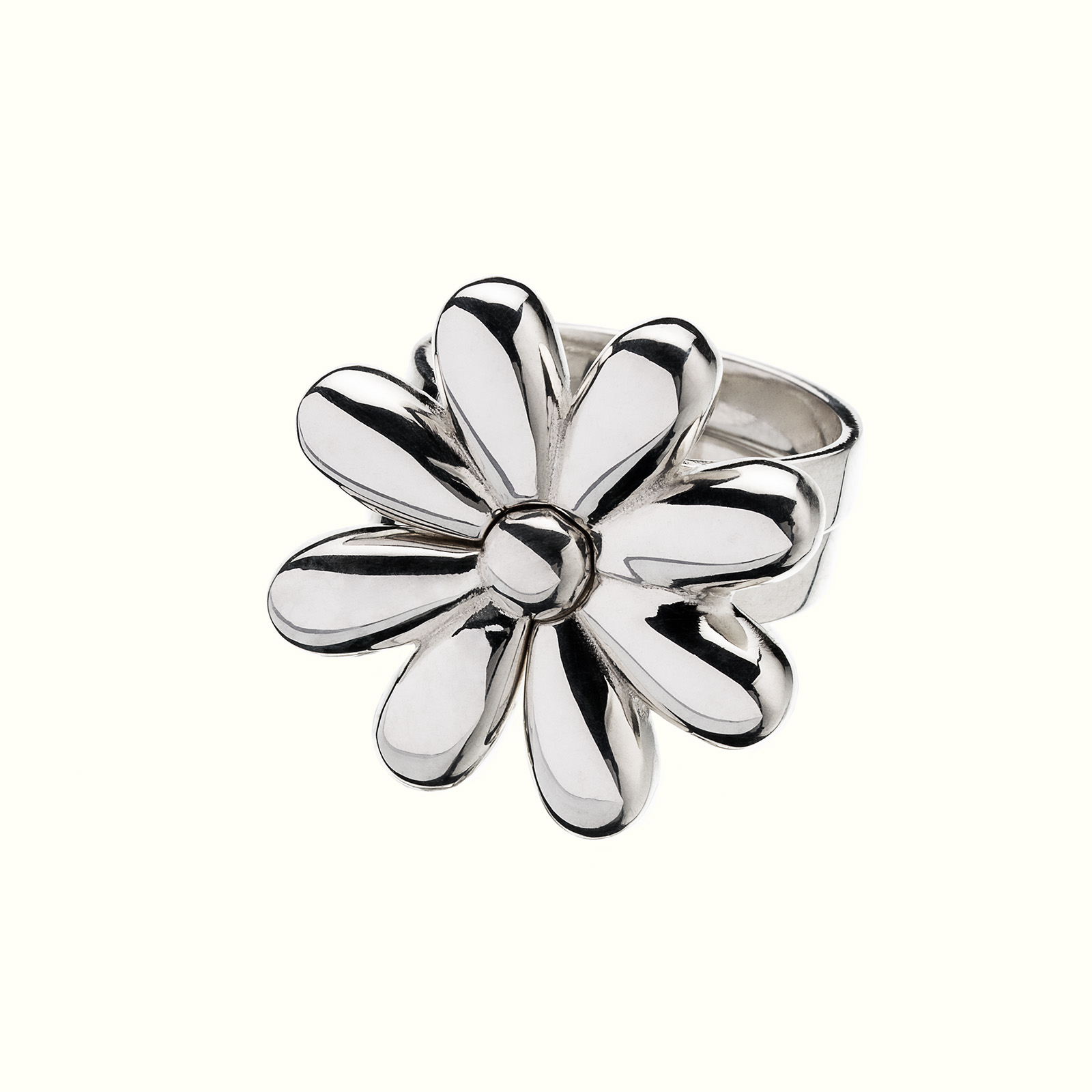 В сете два кольца: с двумя лепестками и с шестью. Вы можете носить их вместе на одном пальце, как цельную ромашку, на разных пальцах или купить на двоих с подружкой и носить по-отдельности, как символ дружбы.