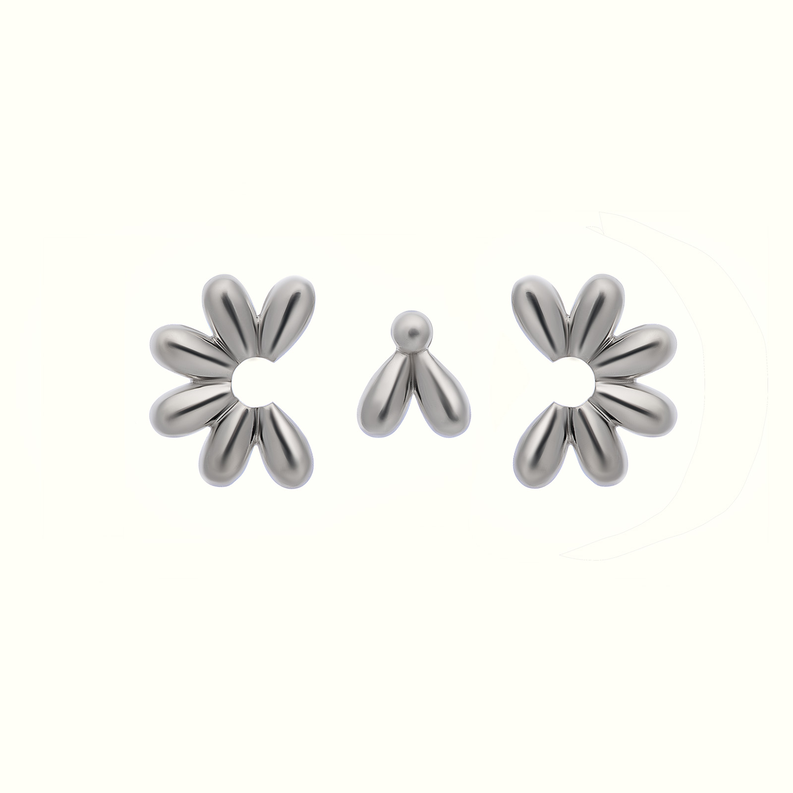 Сет из трех ромашек и ты получаешь две пары вместо одной! В сет входят две серьги с шестью лепестками и одна серьга с двойным лепестком. Миксуй их как хочешь или носи полным сетом.