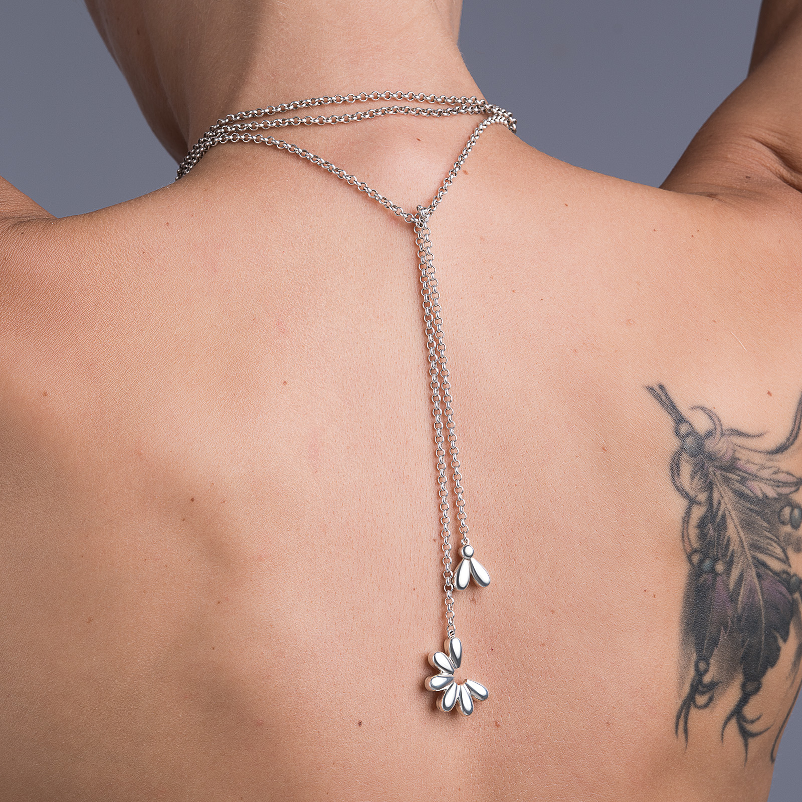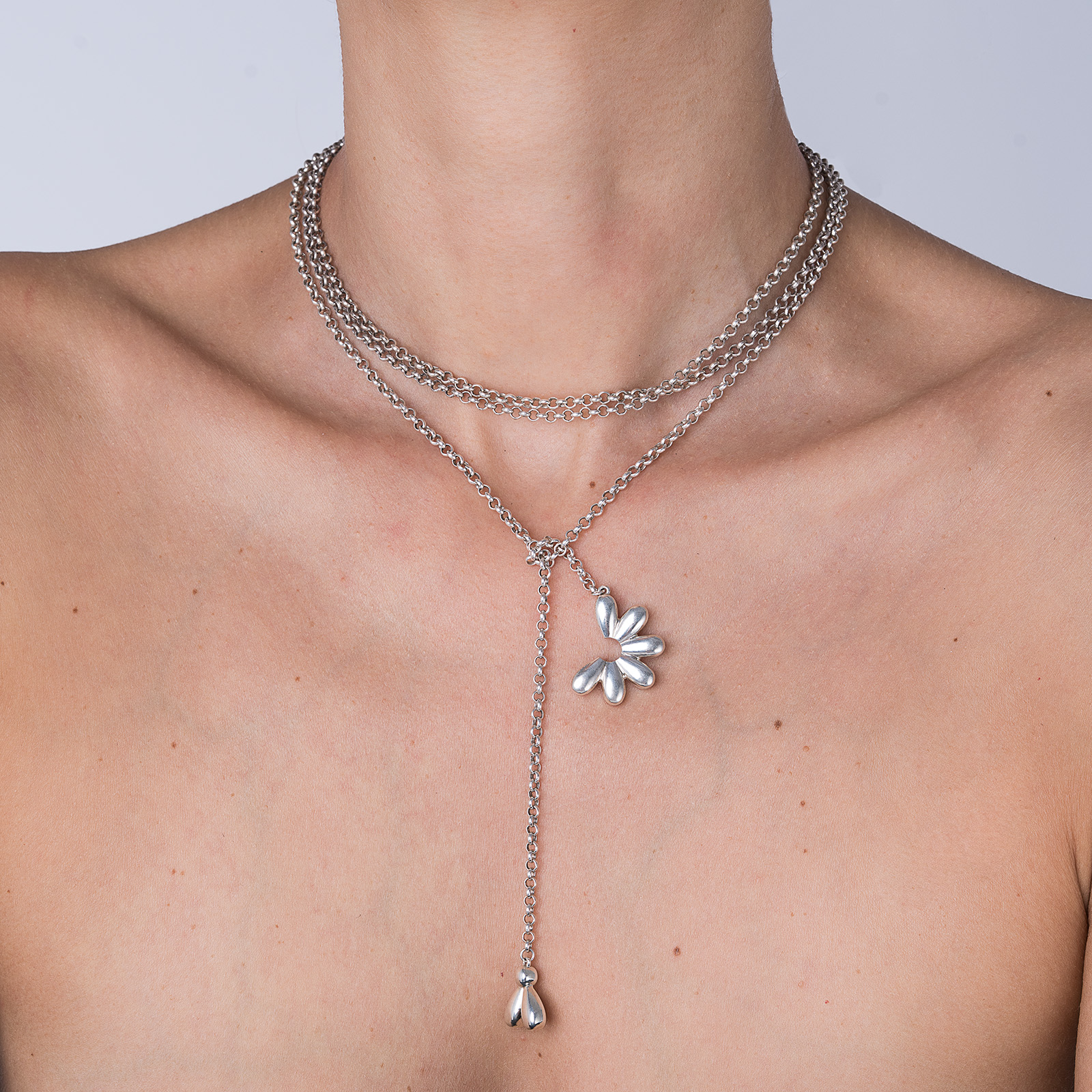 Сотуар с ромашками на длинной цепи. Серебро 925 пробы.
